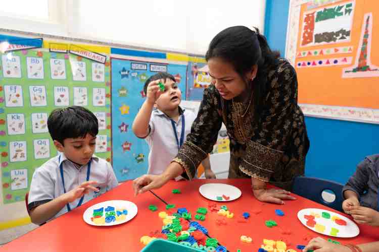 A mixture of art, craft, music, movement, imaginative and role play opportunities encourage the development of a child’s creativity. Children explore a variety of media as they work with colours, textures, shapes, spaces and forms. We also provide children with a variety of natural materials to explore and make things using their own creativity. Children are also encouraged to express their thoughts and ideas through illustrations called Free Expressions. A dedicated dance teacher facilitates movements with music making learning exciting and interesting. The Role Play Room or The Small World or the Pretend Play with corners for Supermarket, Clinic, Kitchen and Dining etc. helps develop important social skills with lots of fun. KG1 Annual Musical, KG2 Graduation Day, Fancy Dress Day, Jazzles – a group Sing-Along, Story Time and Art Attack a Colouring Contest are important days in the school calendar.